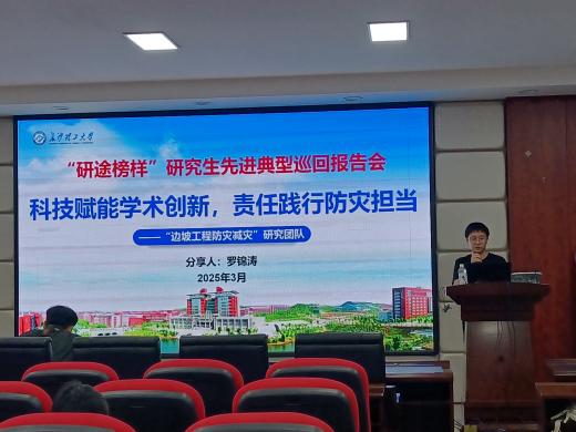 5月13日,化学与医药工程学院、食品与生物工程学院在工科三号楼A320联合举办第四届“研途榜样”研究生先进典型巡回报告会。会议邀请了来自“边坡工程防灾减灾”研究团队的罗锦涛、设计艺术学院的李世成、能源与动力工程学院的徐翱担任报告嘉宾,两院全体研究生参加。