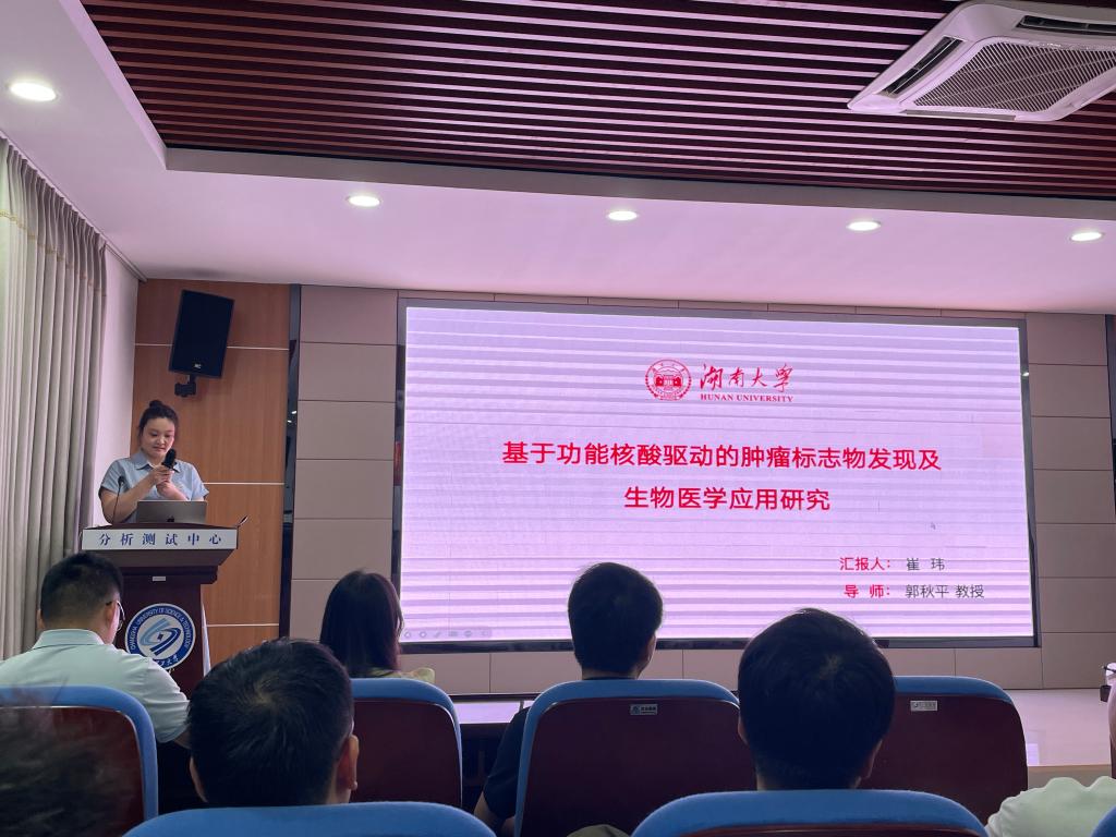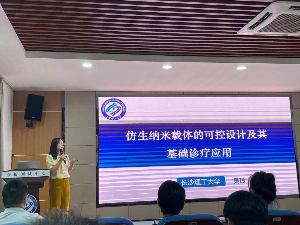 在随后的学术报告环节中,崔玮博士结合自身科研经历,以“基于功能核酸驱动的肿瘤标志物发现及生物医学应用研究”为题,系统介绍了功能核酸作为高效工具在新型肿瘤标志物发现及诊疗策略开发中的应用前景。紧接着,吴玲老师、高思佳博士及张田宇博士也分别进行了研究成果的分享。吴玲老师以“仿生纳米载体的可控设计及其基础诊疗应用”为题,深入探讨了该类载体的设计理念与诊疗一体化潜力;高思佳博士介绍了一种新型材料,该材料可通过降解细菌生物膜的关键成分——胞外DNA,有效对抗生物膜,在组织再生领域展现出良好应用前景;张田宇博士则围绕非核酸靶标表达水平的变化与生物传感这一主题,系统阐述了其在生物分析检测领域的研究成果。在每位报告人分享后的互动环节中,现场师生踊跃提问,围绕报告中的技术细节、研究难点及未来发展方向与各位报告人展开了深入交流与探讨,现场学术氛围十分热烈。