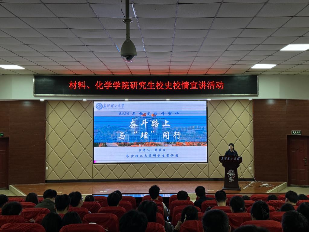 10 月 29 日,化学与医药工程学院于文科楼 A-200 教室组织校史校情宣讲会,2025年新澳门原料网站研究生宣讲团成员粟蓓佳主讲,化学、材料学院 200 余名研究生新生参会。