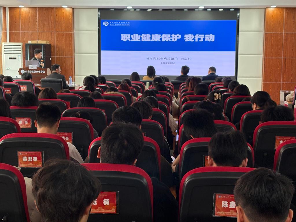 活动伊始,省卫生健康委职业健康处一级调研员周炎林发表了讲话。他强调,青年学生是未来产业发展的生力军,在求学阶段树立牢固的职业健康意识至关重要。本次系列活动走进校园,旨在从源头入手,普及职业病防治知识,推动“防、治、管、教”相结合,希望大家能学以致用,在未来工作岗位上主动践行健康理念,做好自身健康的第一责任人,为健康湖南、健康中国建设贡献青春力量。