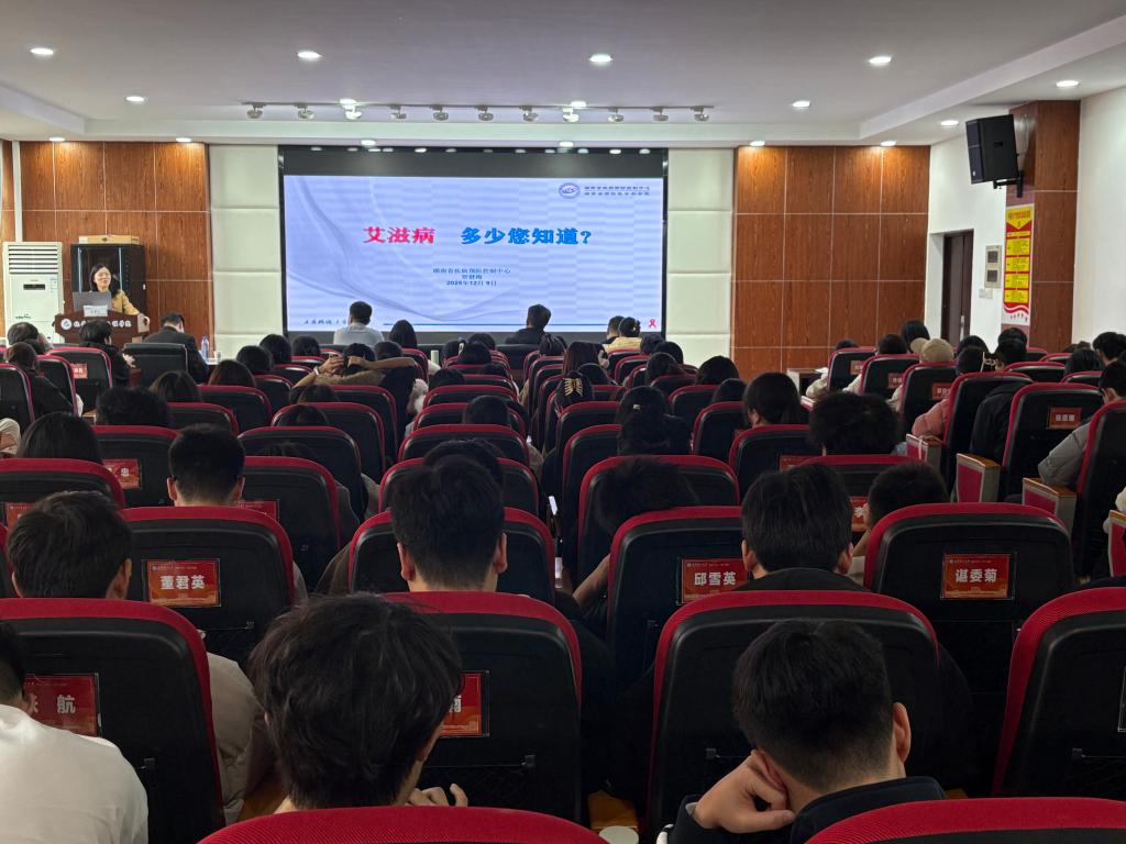 随后,宣讲活动紧扣“化学赋能健康青春,医药守护生命风尚”的主题展开。湖南省职业病防治院主任医师余志林以《职业健康保护我行动》为题,深入浅出地讲解了职业病危害因素、防护措施及相关法律法规。紧接着,湖南省疾控中心主任技师贺健梅以《艾滋病,多少您知道?》为题,系统介绍了当前艾滋病防治的总体形势、流行特点、传播途径及科学预防知识,提升了大家对重大传染病的认知水平和防范能力。