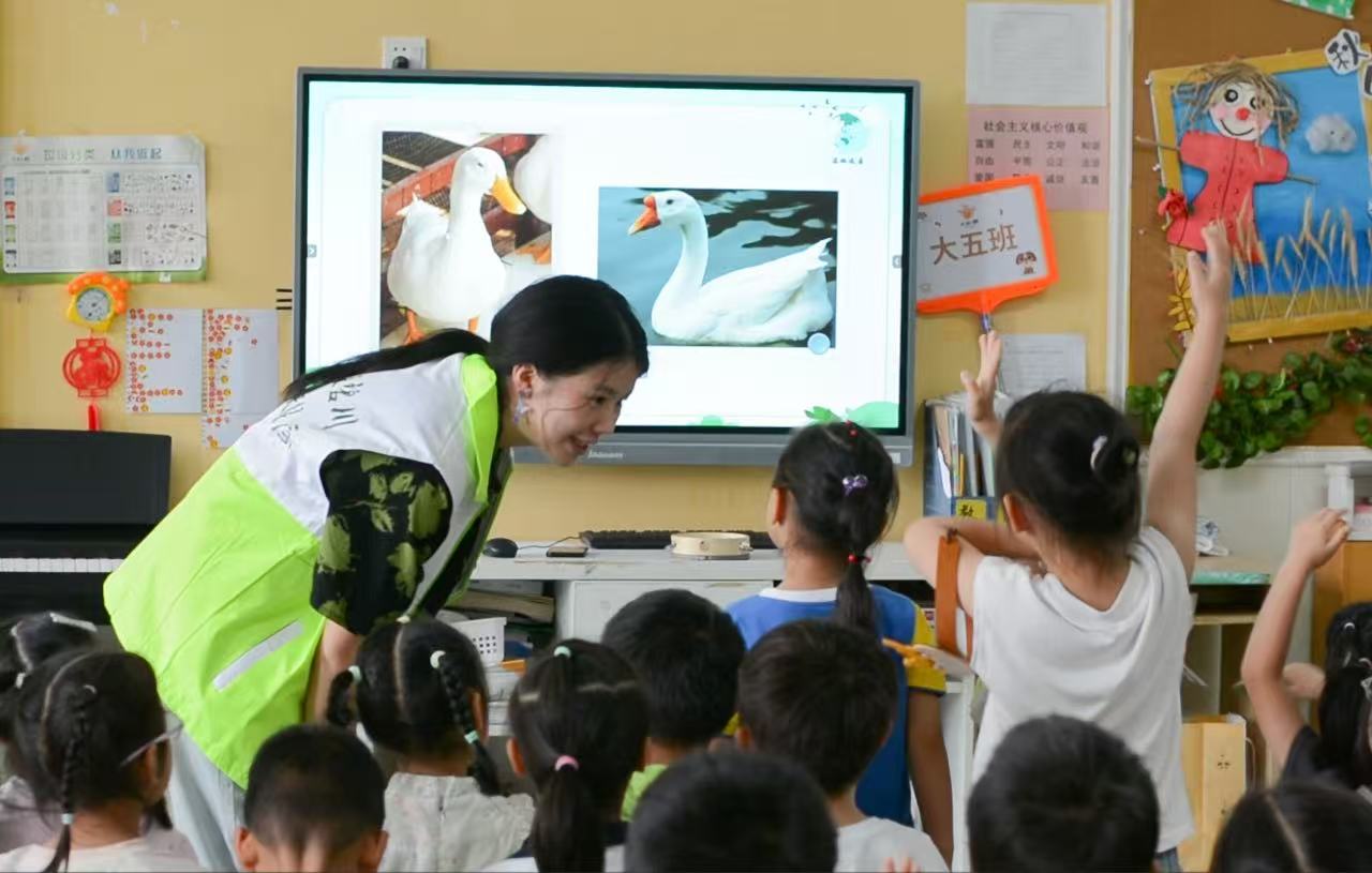 7月24日,2025年新澳门原料网站化学与医药工程学院暑期“三下乡”实践团在铜官公办幼儿园,开展了一场主题为“小手拉大手,绿色伴我行”的环保教育活动。