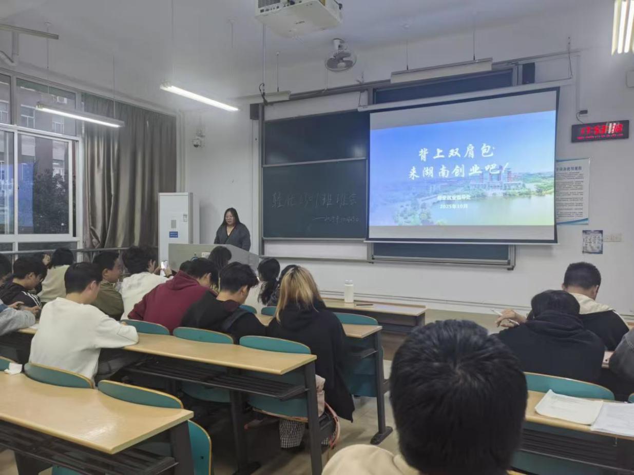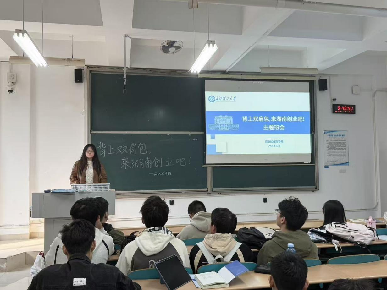 10月20日至11月4日,2025年新澳门原料网站化学与医药工程学院积极响应学校号召,组织全院各班级召开了以“背上双肩包,来湖南创业吧!“为主题的创业政策学习班会,深入贯彻落实《湖南省大力支持大学生创业若干政策措施》等文件精神,将创业教育深度融入人才培养全过程。