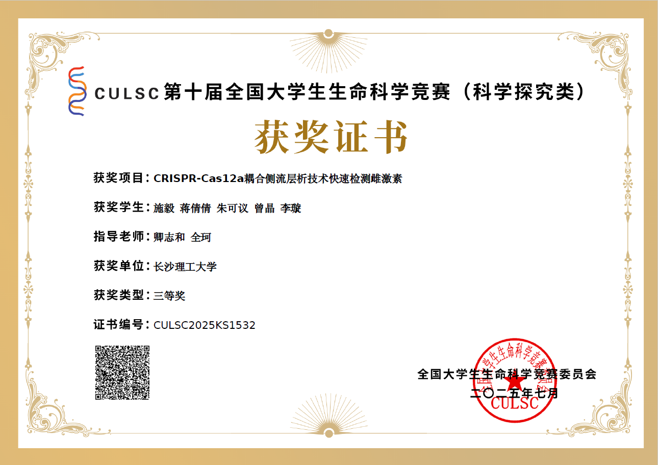 获奖等级:第九届全国大学生生命科学竞赛(创新创业类)三等奖