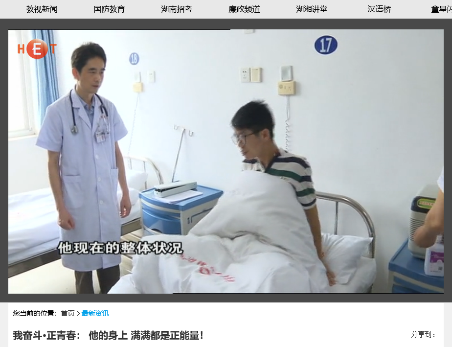 6月10日湖南教育电视台首页最新资讯,以《我奋斗·正青春:用行动丈量生命的厚度》为题对我校计算机与通信工程学院15级研究生邹勇松进行了报道。
