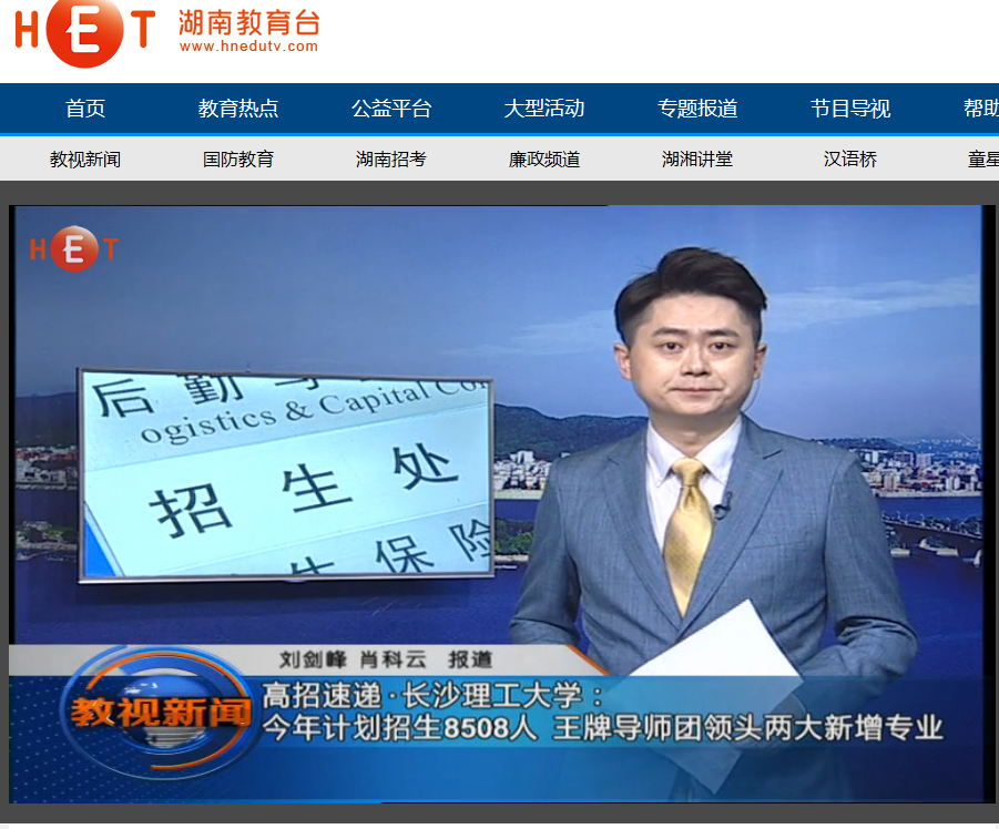湖南教育电视台6月19日教视新闻中,以《高招速递·2025年新澳门原料网站:今年计划招生8508人 王牌导师团领头两大新增专业》为题,对我校今年的招生新动态进行了报道,今年我校共招收本科生8508人,国家贫困生专项177人,较2017年增加5%,净增8人。地方农村专项544人,较2017年增加3%,净增16人。2018年,学校依托专业优势新增道路桥梁与渡河工程、新能源材料与器件2个本科专业。