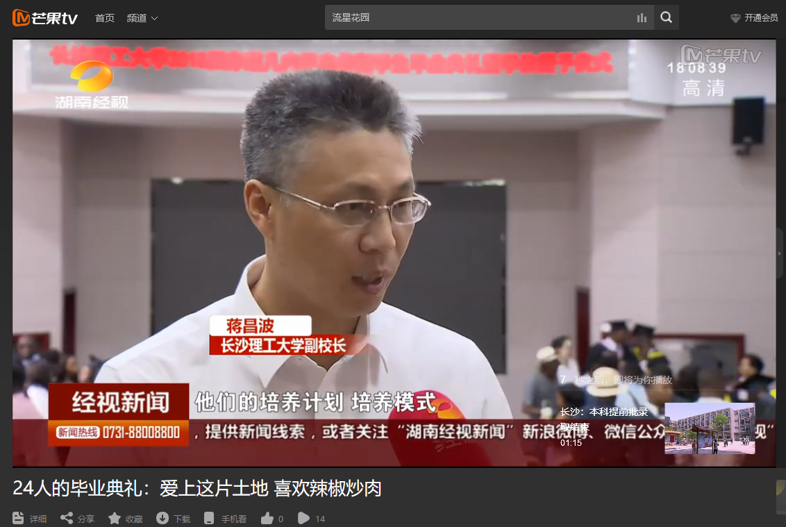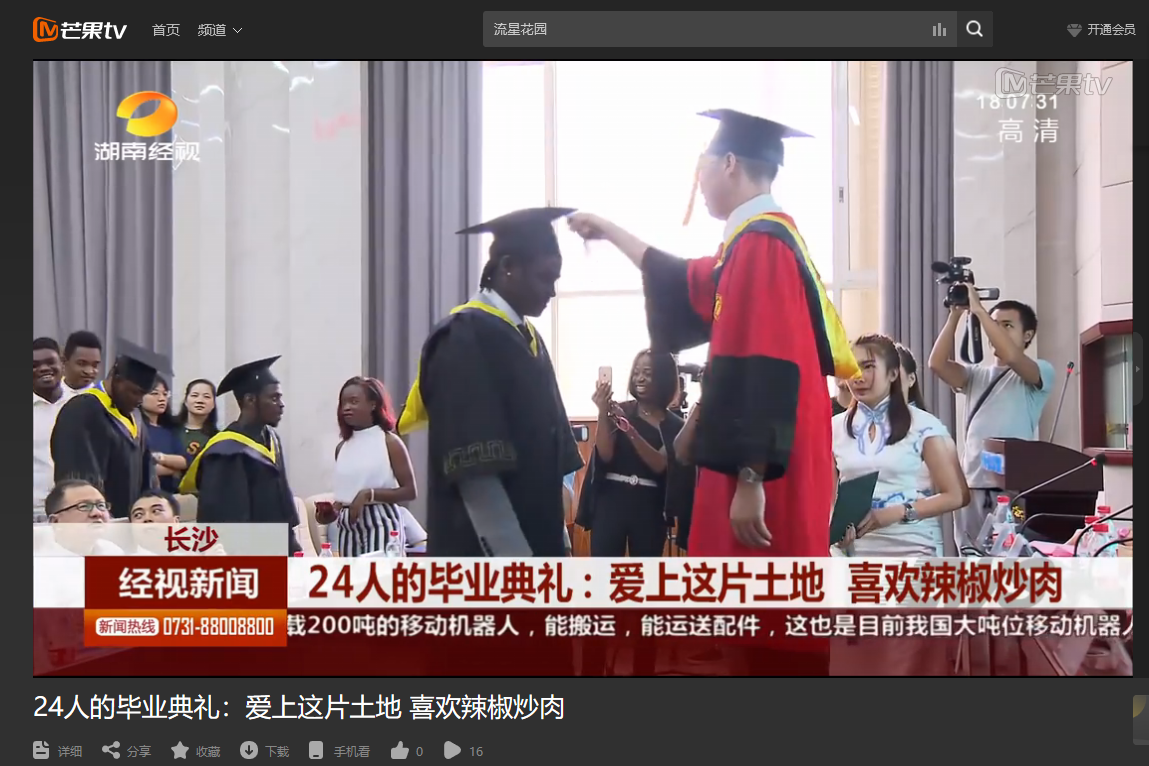 湖南经视7月13日经视新闻,以《24人的毕业典礼:爱上这片土地 喜欢辣椒炒肉》为题,对我校与中国路桥2025年新澳门原料网站联合培养的赤道几内亚来华学生进行了报道。