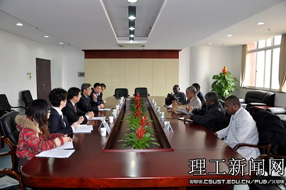 President Zheng firstly expressed his sincere gratitude to Mr. Ambassador for his visit to Hunan Province. After that President Zheng started to introduce CUST in detail such as its history, development, strengths as well as its cooperation with other universities. President Zheng particularly talked about the life and study of Angolan students in CUST. Mr. Ambassador paid tribute to our school for its efforts to create such a good living and learning environment for Angolan students. He also expressed his willingness to take this opportunity to promote the educational and cultural exchanges between CUST and universities of Angola. After the meeting, Mr. Ambassador and his entourage also visited the beautiful campus with great interests.
