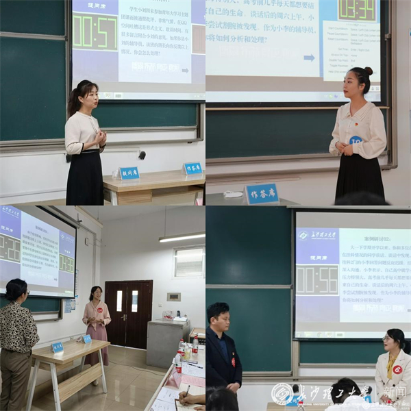 本次比赛对标省赛标准,比赛项目进行了较大改革,参赛选手们既是对手、又要联手,既要出招、也要接招。比赛过程中选手们才思敏捷、思路清晰、导向正确,充分展现了我校辅导员积极向上的精神面貌和全面突出的职业素养。