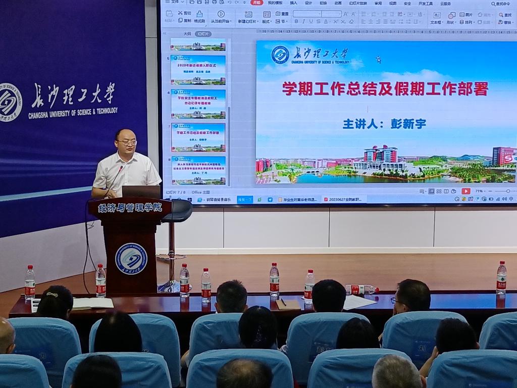 彭新宇从师资队伍建设、本科审核评估自评、学位与研究生工作、学科与科研工作、学生工作等方面对春季学期进行了总结,并对暑期重点工作作了部署。他表示,非常感激每一位老师对学院的辛勤付出,学院各项工作顺利推进、成果丰硕,这些成绩的取得凝聚了学院师生的辛勤汗水和集体智慧,希望学院全体教职工继续协作互助、把握机遇、开拓进取,争取谱写学院发展新篇章。