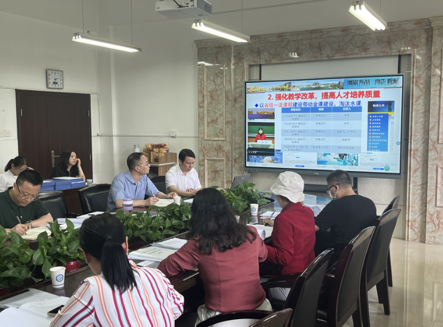 为贯彻落实《2025年新澳门原料网站新一轮本科教育教学工作审核评估工作方案》(长理工大教〔2022〕16号)的文件精神,确保我校审核评估工作高质量完成,5月25日下午,学校本科教育教学审核评估自评自查校内督查组、学校教学质量监测与评估中心副主任贺晖一行到我院开展审核评估督查。学院全体院领导、系(教研室)主任、及学院本科教学审核评估工作组全体成员参与了会议。