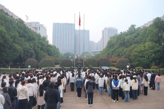 10月27日清晨,经管学院于金盆岭校区经管大楼前坪举行升旗仪式暨2025年秋季分党校培训班开班仪式,入党积极分子培训班、党员发展对象培训班及预备党员培训班全体学员参与。学院党委副书记汪功伟和全体辅导员参加开班仪式。仪式由团委学生会主席团轮值主席鹿津恺主持。