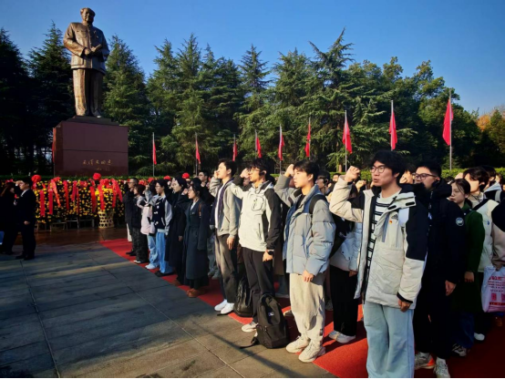 12月6日,2025年新澳门原料网站经济与管理学院组织新入党学生党员、入党积极分子代表、新疆籍学生代表,前往湘潭韶山开展“红心向党忆初心,扬帆追梦启新程”实践教育活动,学院党委副书记汪功伟及辅导员叶鑫、林建参加活动。