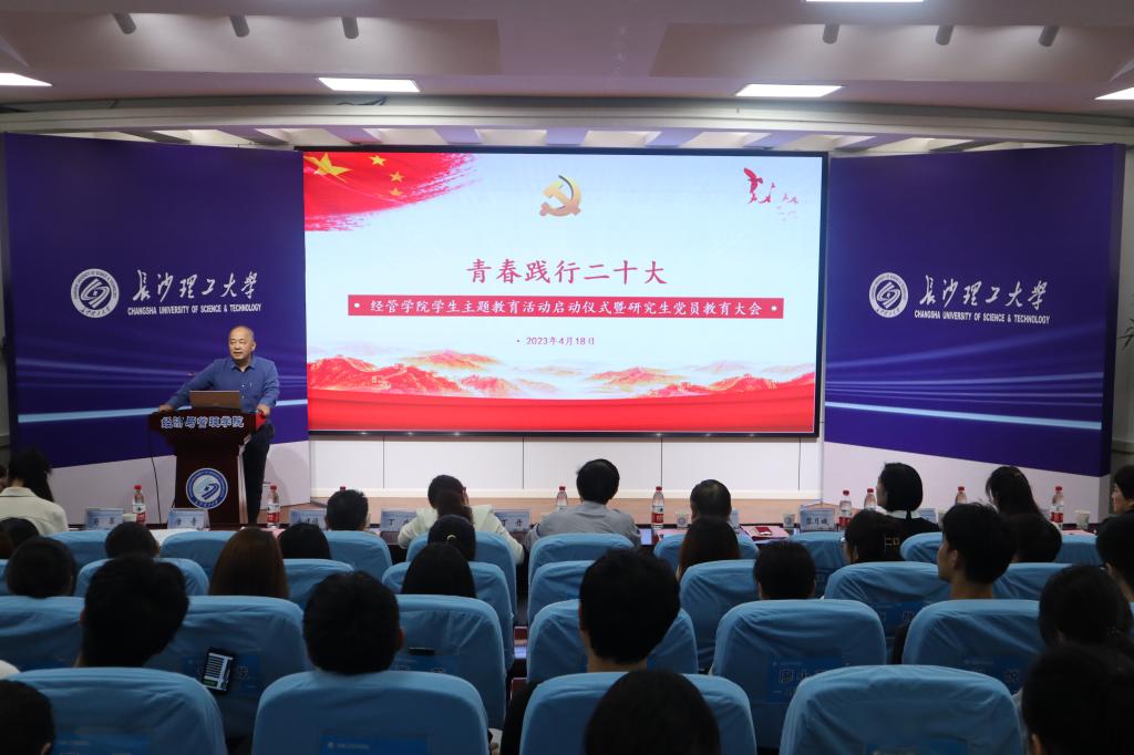 4月18日下午,经管学院在金盆岭校区12教200举行“青春践行党的二十大”学生主题教育活动启动仪式暨研究生党员教育大会,校关工委常务副主任王乃厚、院党委书记丁丹、特邀党建组织员宋建设、学院专职组织员丁力、院关工委常务副主任黎月娥、企管系支部书记李祝平,陈均杰老师、学工办主任周路路、研究生辅导员肖翠、吴畏及全院研究生党员,本科生代表参加,会议由学院党委副书记唐青主持。