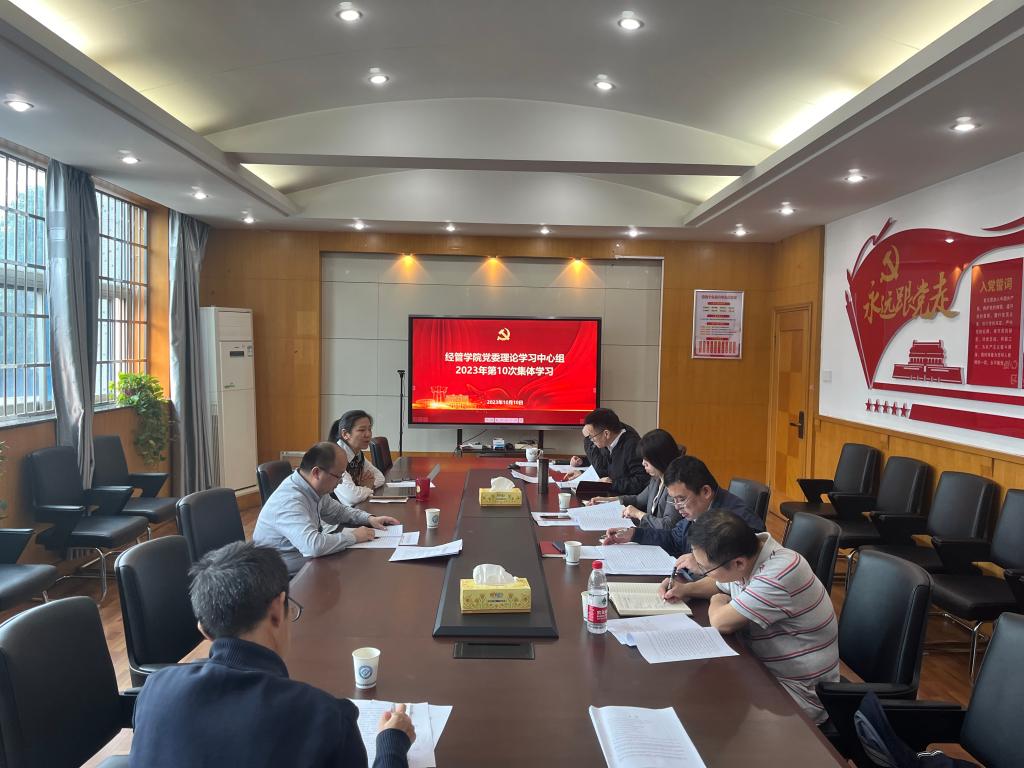 10月10日上午,经管学院党委理论学习中心组在金盆岭校区经管大楼307会议室举行2023年第10次集体学习,院党委副书记唐青主持学习,院党委理论学习中心组成员参加学习。