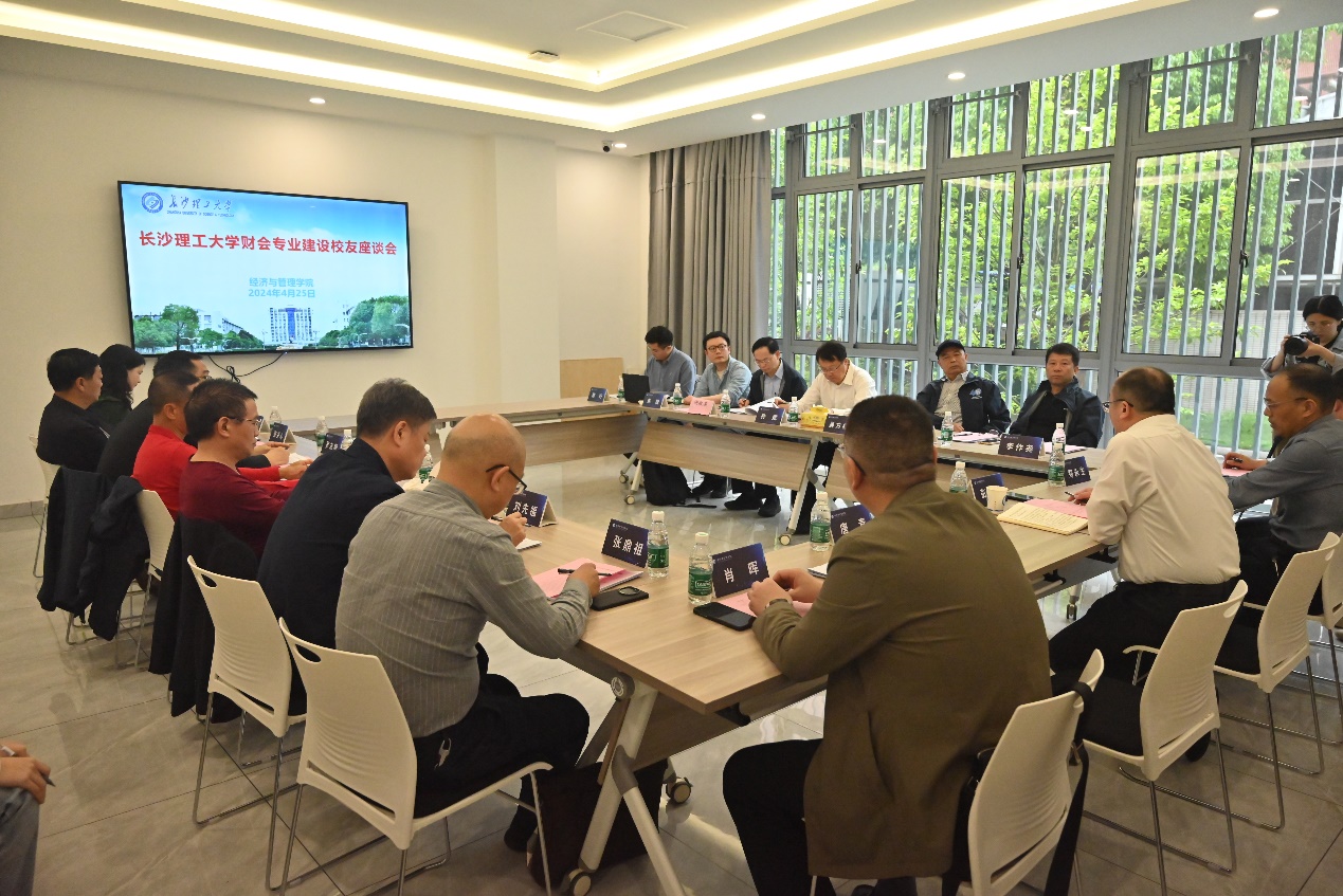 4月25日下午,学院在云塘校区三全育人教育基地会议室召开财会专业建设校友座谈会。我校财会专业首届本科班8001班校友李国忠(国能集团原高级业务总监)、游华(中交集团原高级业务总监)、刘先福(招商局公路网络公司原纪委书记、财务总监)、吴方红(中交集团城市投资发展有限公司原党委副书记、纪委书记)、孙斌(深圳高速公路集团股份有限公司原投资总监兼集团战略投资部总经理,深高速产业投资基金有限公司董事长)、颜如意(湖南现代投资有限公司原财务总监)、罗友明(南玻集团有限公司原财务总监)、李作尧(湖南省审计局基建处处长,二级巡视员)、谢敬英(招达公司原财务总监)等参加座谈会。校友中心主任唐青、学院院长彭新宇、校友中心副主任肖晖、计财处副处长郑永生、副院长王治、财会系张鼎祖教授、金融系张关心副教授、财会系主任朱锐、财会系党支部书记徐先知及部分教师、学生代表参加了座谈会。会议由王治副院长主持。