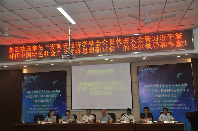 会议第二个阶段是习近平新时代中国特色社会主义经济思想研讨会。学术会议共收到来自省内20余个单位的60余篇学术论文。副理事长兼秘书长陈银娥教授宣读了优秀论文获奖名单。湖南商学院经济与贸易发展研究院院长柳思维教授、湘潭大学副校长刘长庚教授、湖南农业大学副校长曾福生教授、湖南大学经贸学院院长张亚斌教授及湖南商学院经济与贸易学院院长向国成教授做了主旨演讲。最后,新任理事长王耀中教授对会议做了总结。