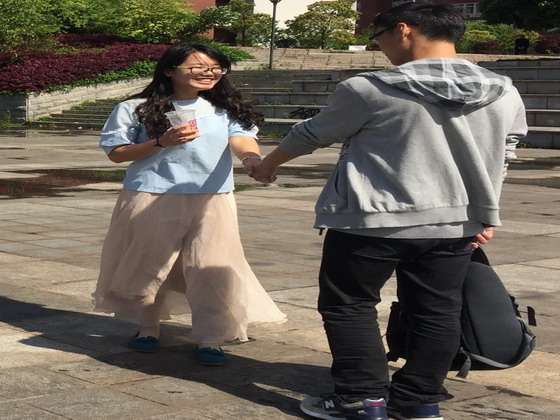 活动分为三个部分。首先同学们在文科楼D201教室进行签到、主持人介绍活动规则、嘉宾传授经验。此环节主要是分享与陌生人交往的知识与经验。第二部分是室外极限挑战环节。同学们被分为多个小组,每组由一名心理部干事带队,大家在全校范围内寻找陌生人,并与其拍照完成指定动作。这部分要求同学们有较好的交流能力,面对陌生人的不解与冷眼,能够随机应变。评委将根据照片中表达出的内容进行评分。最后是室内交流活动心得环节。大家纷纷积极发言,分享此次活动所带来的快乐与自我提升。经管学院朋辈心理部15级分会部长彭鑫表示,此次活动能够很好地提高同学们的胆量与勇气,克服内心的自卑与交友的恐惧,帮助他们结交到更多志同道合的朋友。此外,活动设有微信投票环节,根据投票选出最善搭讪的组合。