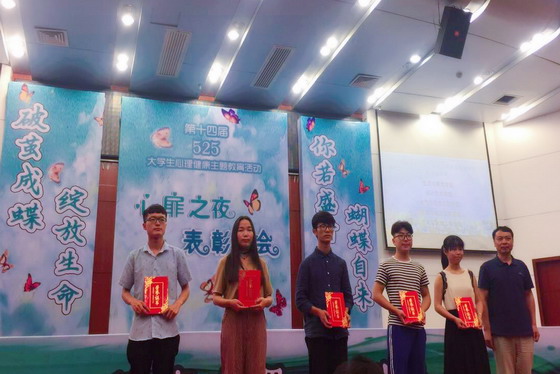 5月25日晚七点,学校第十四届“5.25”心理健康主题教育活动之“心扉之夜”表彰大会在图书馆报告厅举行。副校长谈传生及相关职能部门领导出席会议。