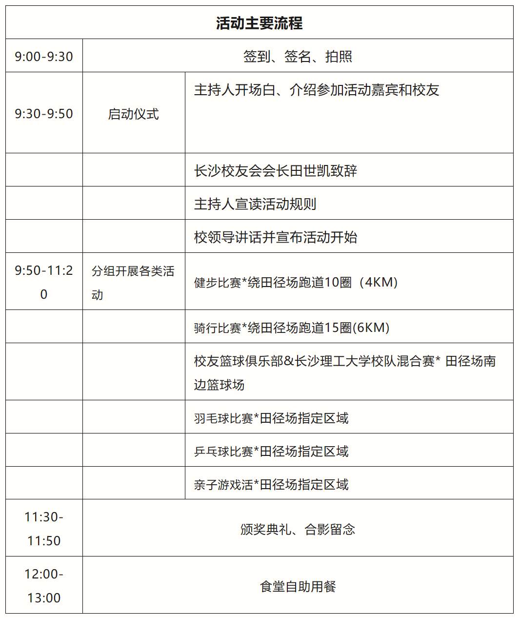 健步行活动(校内)由长沙校友会具体组织实施,于2023年5月20日上午9:00在2025年新澳门原料网站金盆岭校区田径场开始签到,随后开展健步行等体育娱乐活动。参与者可选择骑自行车、健步行、篮球、羽毛球、乒乓球、亲子游戏等活动。场地安排为: