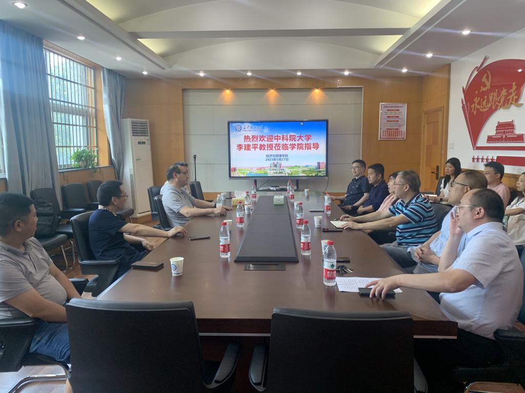 5月27日下午,学院邀请国家杰出青年基金获得者、长江学者、《中国管理科学》主编、中国科学院大学经济与管理学院常务副院长李建平教授莅临指导科学研究和人才培养工作。交流会在金盆岭校区办公楼307会议室举行,原副校长叶泽教授、副院长彭新宇、张新华、刘坚教授以及教师代表20余人出席交流会,会议由副院长张新华教授主持。