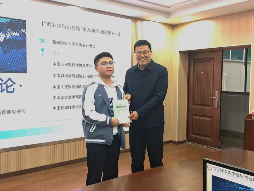 1117日下午,学院在经管大楼F202报告厅举办了“商界精英进校园”论坛,邀请了我校湖湘学者讲座教授、中国印钞造币集团有限公司党组书记、董事长刘贵生担任第9期主讲嘉宾,主题为“现代财务论”,讲座由财务会计系主任朱锐主持,学院师生代表60余人参加了讲座。