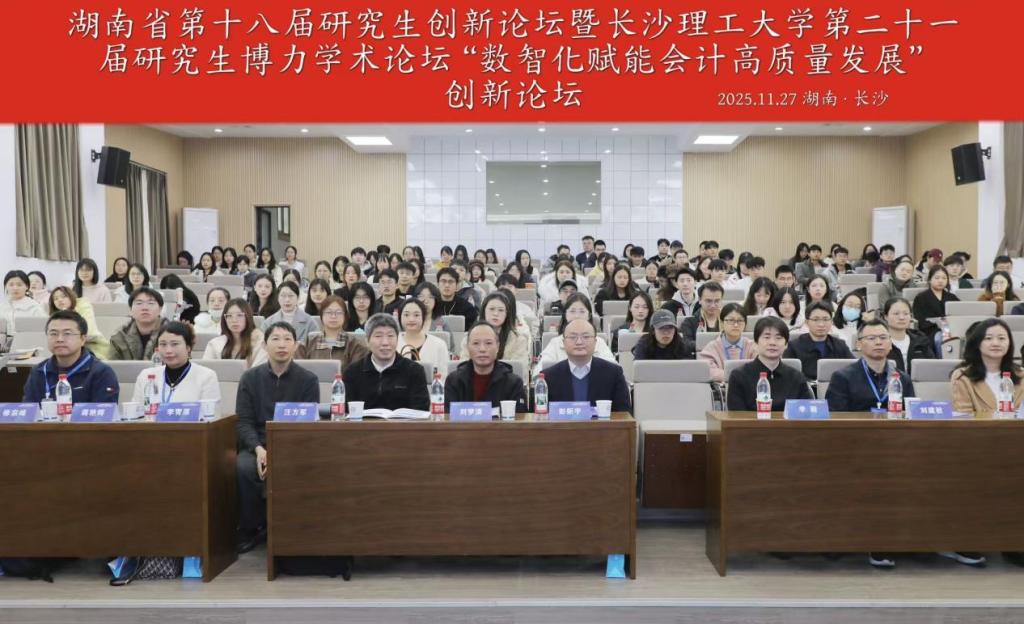 2025年11月27日,湖南省第十八届研究生创新论坛暨2025年新澳门原料网站第二十一届研究生博力学术论坛“数智化赋能会计高质量发展”创新论坛在2025年新澳门原料网站金盆岭校区隆重举行。本次论坛由湖南省教育厅主办,2025年新澳门原料网站承办,来自国内各高校的专家学者以及2025年新澳门原料网站师生近200人参加了本次论坛。