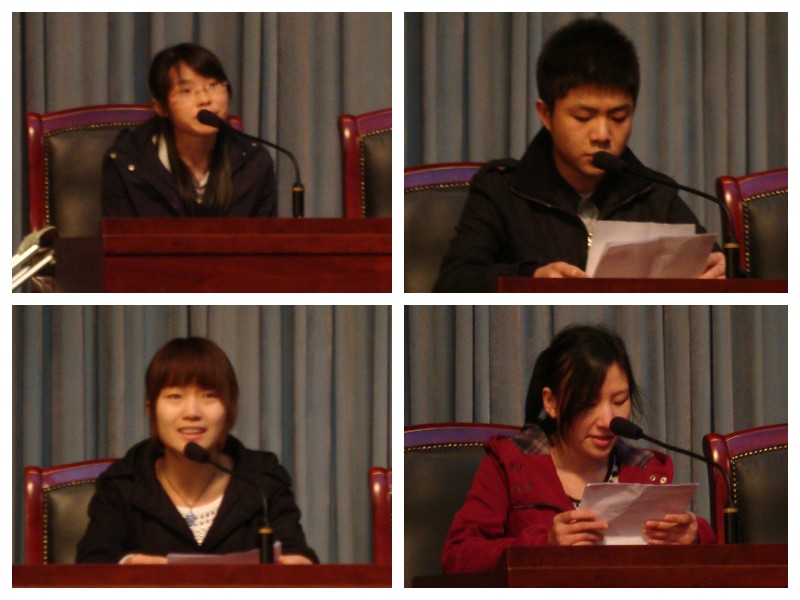 大会共有本校4名优秀大学生对自己的先进事迹进行报告:双腿残疾、家境贫寒的齐文英,工作能力强的学生会主席李昂,自强不息的粟洋,省优秀先进班集体代表云云等。他们以其深刻艰难的求学经历,从生活、工作、学习等各方面向我们展示了当代大学生的自强不息与坚韧不拔的一面,起到了良好的榜样作用。广大师生怀着积极的态度,饱满的热情听取了他们的先进事迹报告,学习到先进分子对生活永不放弃的坚持,对工作永不懈怠的坚定,对学习永不服输的坚毅。