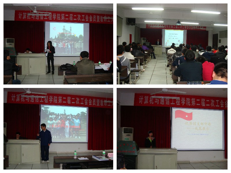 首先,霍书记致开幕词,表达了对此次比赛的期待。接着,各参赛团支部依次上台演示答辩精美的PPTFlash演示,动听的背景音乐,给大家提供了一场视听盛宴,向大家展示了班级团支部思想建设、科技活动、学风建设、集体活动等各方面的风采,选手们的精彩的讲演与答辩引起现场阵阵掌声。答辩结束后,霍书记从整体对此次大赛进行了点评,肯定了大家的优秀表现与敢于争先的精神、PPTFLASH的制作水平,对英语过级率超过90%的通信工程0802班提出特别的表扬,希望同学们通过此次比赛能更好的建设好本班的团支部,再接再厉,再创佳绩!最后,老师宣布了比赛结果,并简评了比赛,希望同学们今后更加注重专业技能的培养,逐步成立Flash制作团队。