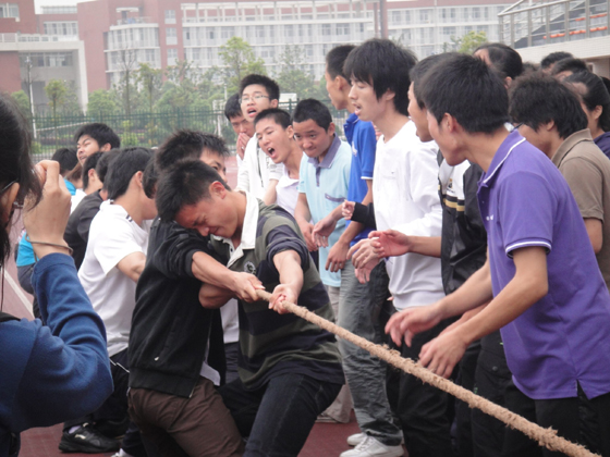 为提高大家的身体素质,丰富校园文化活动,增强同学之间的交流与友谊,发扬“团结友爱、互帮互助”的精神,提倡多运动、多锻炼,经过计通学院09级学生会的积极筹备,计通学院09级学子于5月17日中午举行了“拔河比赛”。赛前09级辅导员任志祥老师发表讲话,对09级学生会的用心组织安排给予肯定,指出这是09级学生第一次独立举办这个活动,鼓励大家认真比赛,祝大家取得好成绩。比赛中,大家热情高涨、细心配合、咬牙坚持,啦啦队的加油助威声排山倒海。本次比赛,各队公平竞争,赛出了风格,赛出了水平,展示了09级学子蓬勃向上的精神风貌和良好的身体素质,相信09级学子一定会将比赛中表现出来的自信、从容、永不放弃的精神带到学习生活中去。