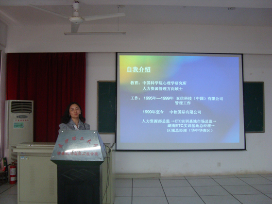 计通学院深入贯彻“两个着力于”,全面落实学生工作部本年度“博学创新,勤奋进取”励志与成才主题教育活动部署,于2010年5月25日下午2:30在理科楼B-311举办了励志专题讲座之“软件企业的就业策略”,主讲人为中国科学院心理学研究所人力资源管理方向硕士、中软国际湖南ETC实训基地总经理成焕。院党委副书记霍向阳,中软国际经理、副经理、技术总监等出席。