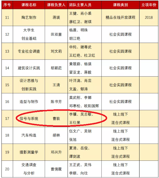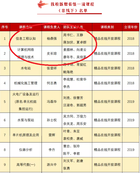 近日,湖南省教育厅发布《省级一流本科课程(非线下)评审认定结果的通知》,计通学院有三门课程成功入选省级一流本科课程,分别是杨鼎强教授主持的《信息工程认知》、史长琼副教授主持的《计算机网络原理与技术》、曹敦副教授主持的《信号与系统》。