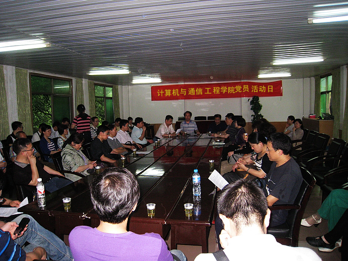 首先,党委副书记兼工会主席方碧波副教授就学院开展学习《高校师德规范》活动进行了规划布置。接着,院长李峰教授就学院目前如何激发教师工作热情,落实学院“正党风、抓学风、建平台、促发展”主题年中党员发挥带头作用发表了讲话,并与大家一起学习了《高校师德规范》。再后,党委副书记(主持工作)徐学军教授就高校职能与教师职责做了主题发言,希望党员都是一面旗帜,积极支持系部和学院的工作,积极营造乐观向上的学院文化氛围,搞好本职工作。坚持在人才培养中多打造一些师生同游的环境;坚持在科学研究与服务社会中正确理解“四化两型”的科学内涵和湖南省委打造“四个湖南”的精神实质,抓住信息化与信息湖南建设的良好机遇,把学院工作推上新的台阶;坚持在传承文化创新上正确品味大学精神与现代大学制度精髓,保持阳光心态,享受幸福生活。最后,组织了预备党员在党旗下宣誓,全体党员重温入党誓词。