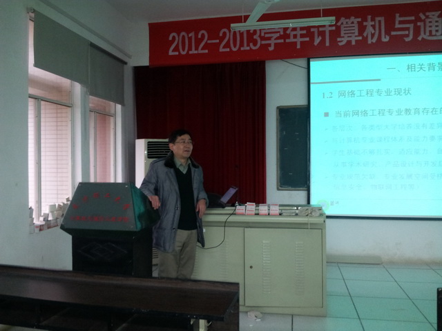 20121218,国防科大网络工程系主任徐明教授应邀来我院做学术交流。徐明教授现为网络工程专业国家级教学团队负责人,中国计算机学会高级会员,IEEE会员,ACM会员。军队育才奖金奖获得者。担任IASTED International Journal of Computers & ApplicationsJournal of Communication 国际期刊编委。