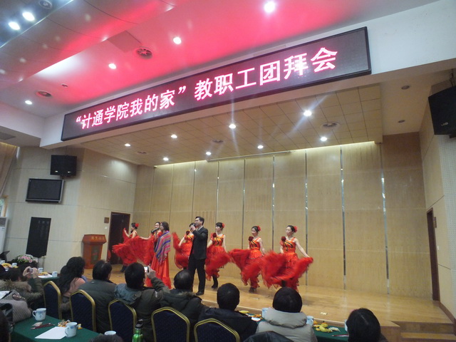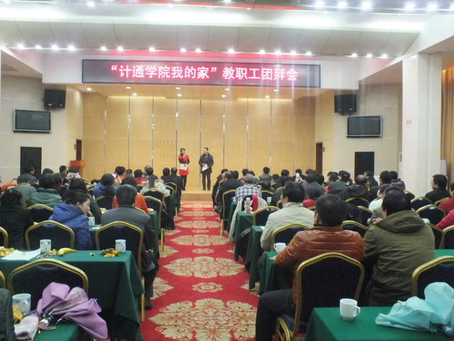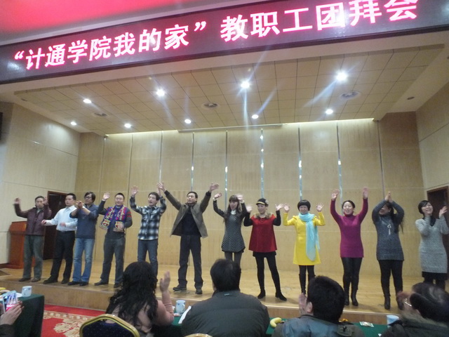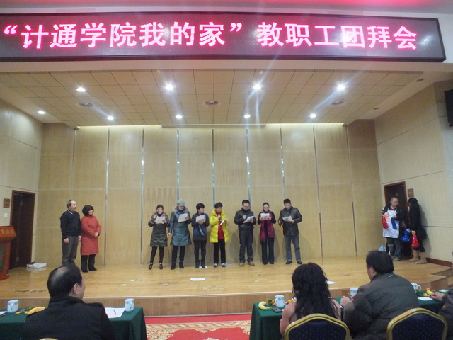 下午,学院举行“计通学院我的家”教职工团拜会。文艺汇演由学院邓广慧老师和刘青老师主持,7个部门分别表演了形式各异、精彩纷呈的节目,最后经过评委打分,软件工程系的歌伴舞《萍聚》获得第一名,网络工程系的小品《网络工程Style》获得第二名,行政的《新诗歌朗诵》及计科系的《时装表演》获得第三名,通信系女声二重唱《听!是谁在唱歌》、基础课部的单口相声及实验中心的大合唱《弹起我心爱的土琵琶》获得组织奖。