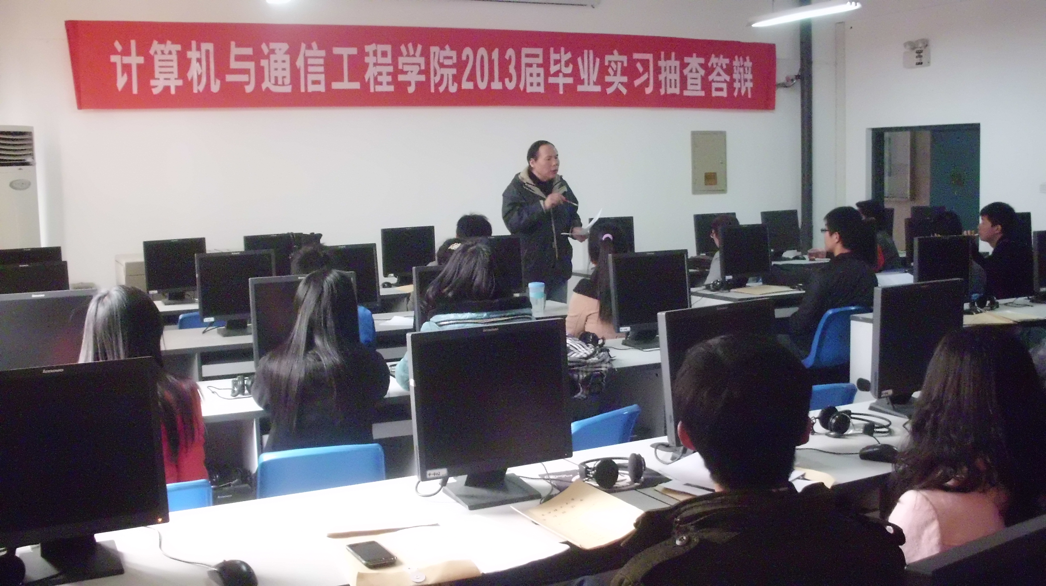 为进一步做好我院2013届毕业实习工作,加强对毕业实习的管理和监督,计通学院成立2013届毕业实习答辩组,并于321在金盆岭75015042013届毕业生毕业实习进行抽查答辩。本次答辩随机抽查了33位毕业设计(论文)指导老师所带的45名学生(其中本部27名、城南18)。答辩采取学生汇报、专家提问、学生答辩的形式进行。
