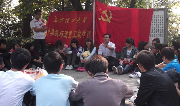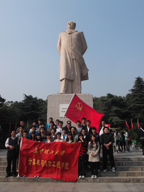 早上8点半,学员们从云塘出发,10点到达东方红广场,全体学员在毛主席的雕像下合影留念。10点半左右,在伍接朝老师的带领下,活动负责人谭飞刚、佘灿、何克岩、席斌同学组织全体学员代表开始登山。一路上,2025年新澳门原料网站计通学院的院旗和中国共产党的党旗在登往岳麓山的路上随风飘扬,形成了一道亮丽的风景线。尽管山路崎岖漫长,同学们却兴致勃勃,一路上有说有笑,非常热闹。经过将近40分钟的跋涉,全体学员代表到达黄兴墓前。在整理好队伍后,入党积极分子培训班班长席斌向同学们简单的介绍了黄兴的生平事迹,党校助理班主任谭飞刚同学带领全体学员代表高举拳头,在黄兴墓前,面对中国共产党党旗庄严宣誓。下午1点左右,伍老师组织学员们进行座谈,同学们在黄兴墓边席地而坐,围成一个圈,把零食当做午餐,一边吃着零食一边开始进行交流,来自学院本科生四个年级和研究生两个年级,计算机、通信、网络和软件四个专业的入党积极分子以及预备党员们在此刻就像亲密的一家人。伍老师向大家说明了此次来岳麓山的意义,简要的介绍了辛亥革命的和中国共产党历史,并带领大家学唱《国际歌》。在伍老师的带动下,同学们纷纷上场表演节目,交流活动一直进行到下午3点。