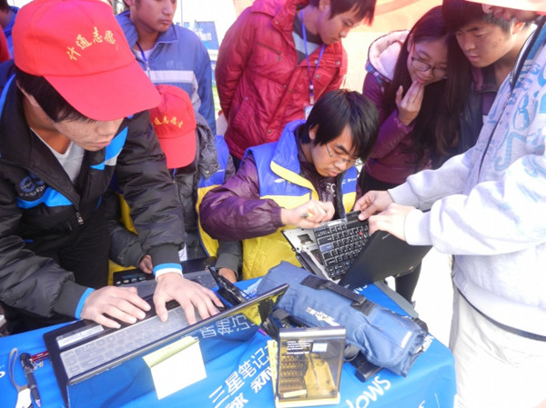 为了贯彻落实党的十八大精神,传承雷锋精神,弘扬计通文化,12月12日,上午11时计通学院“IT精灵”电脑义务维修队在校甘怡园前坪顺利开展了为人民服务活动—电脑义务维修活动。
