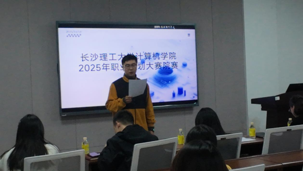 2025年11月19日晚,2025年新澳门原料网站计算机学院于金盆岭校区9教211教室举办新一届职业生涯规划学院选拔赛。本次大赛以“强化学生职业规划意识,明确发展方向”为核心,旨在为学生搭建实践展示与能力锻炼的平台,帮助学生明晰职业发展路径、认清自身优劣势,提升职业规划能力与就业竞争力,同时选拔优秀选手参加校级赛事。