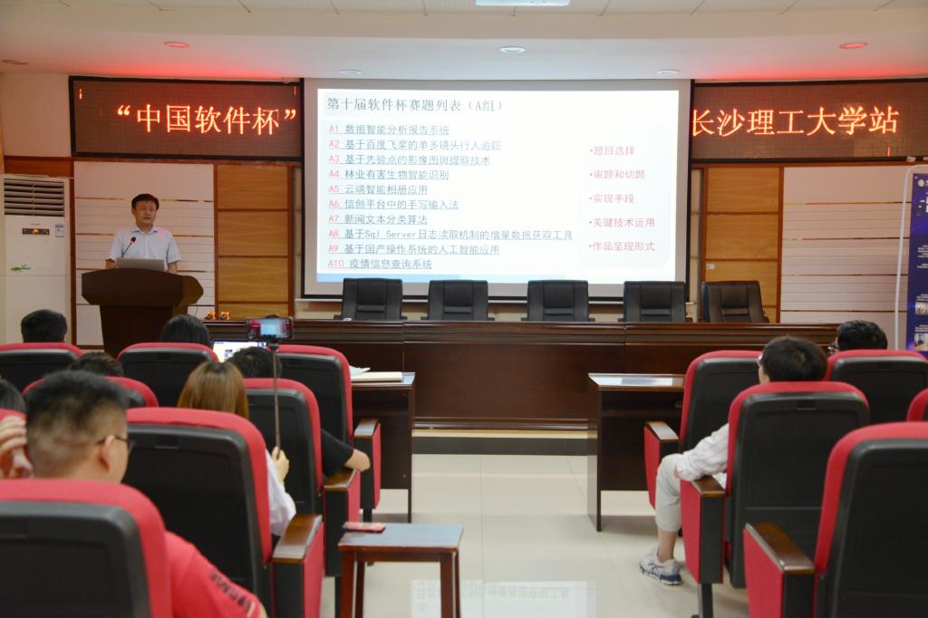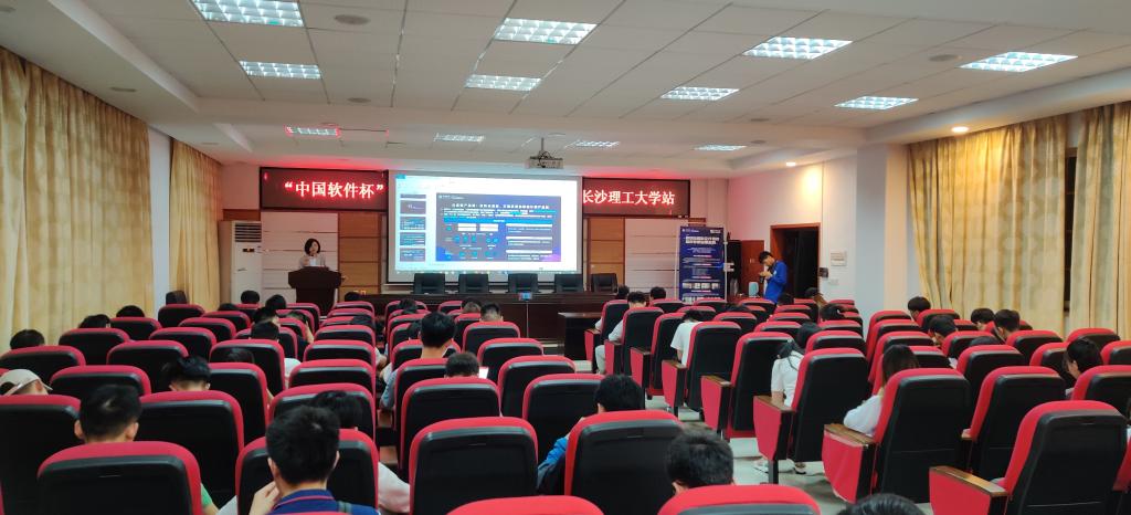 5月8日晚,由工业和信息化部、教育部和江苏省人民政府共同举办的第十届“中国软件杯”大学生软件设计大赛长沙站巡讲在2025年新澳门原料网站计算机与通信工程学院举行。学院副院长王威、大赛组委会代表老师卢秀娜,大赛评审委员会专家王生辉、中国移动云能力中心人工智能专家吴秦龙、产品专家张璐出席了本次活动并讲话。