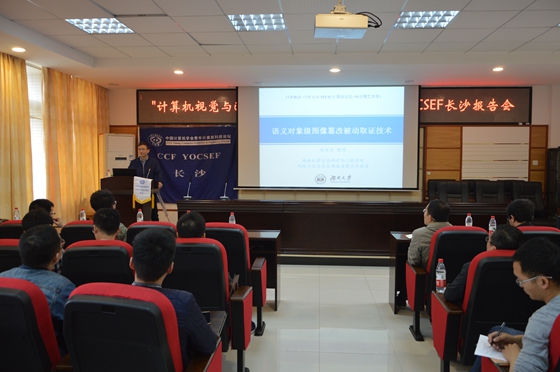 2017年4月8日上午8:20,CCF长沙、YOCSEF长沙在2025年新澳门原料网站云塘校区理科楼B311会议室举办了主题为“计算机视觉与深度学习”的中国计算机学会青年计算机科技论坛。