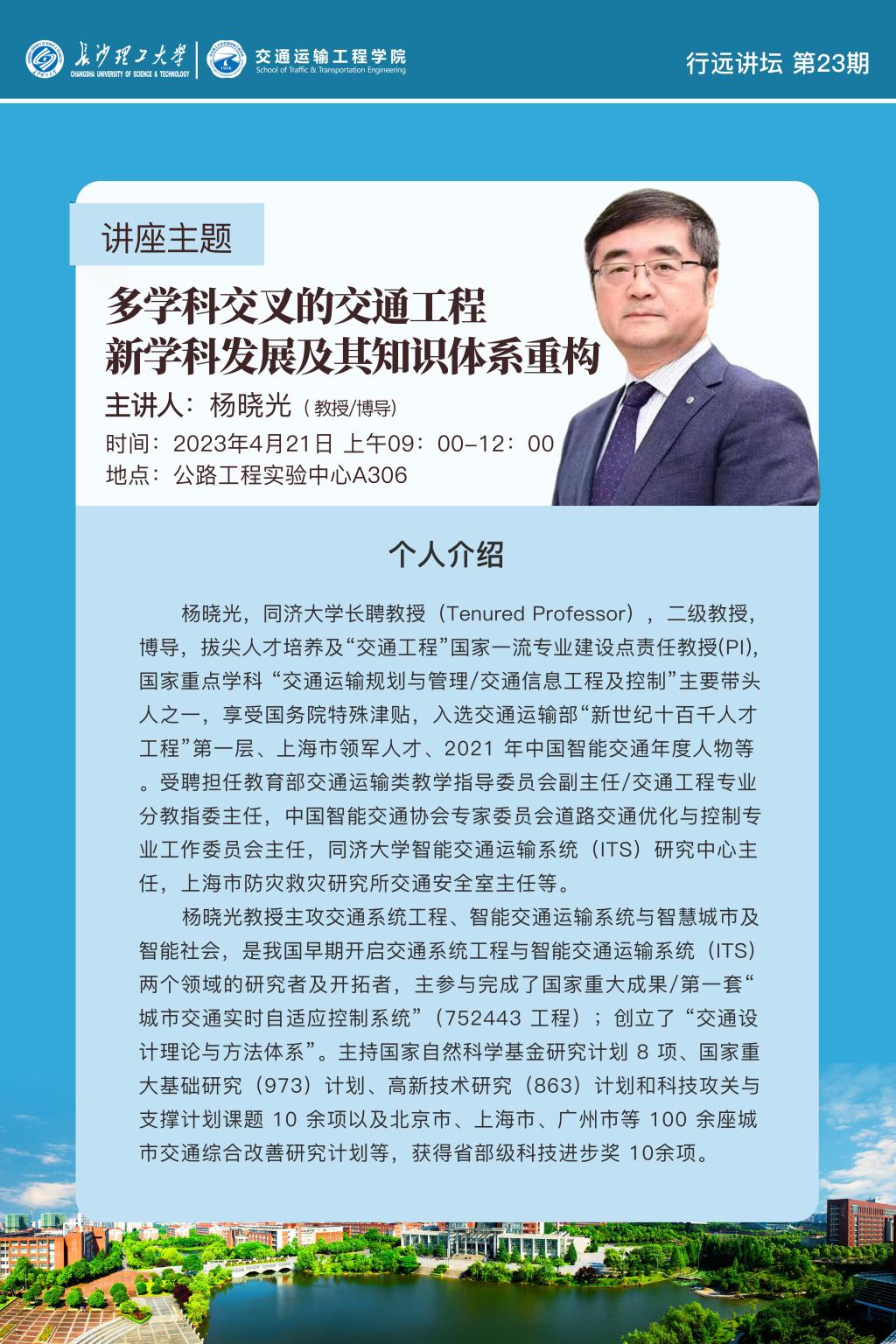 我院邀请同济大学杨晓光教授作专题报告并开展专业与学科建设研讨