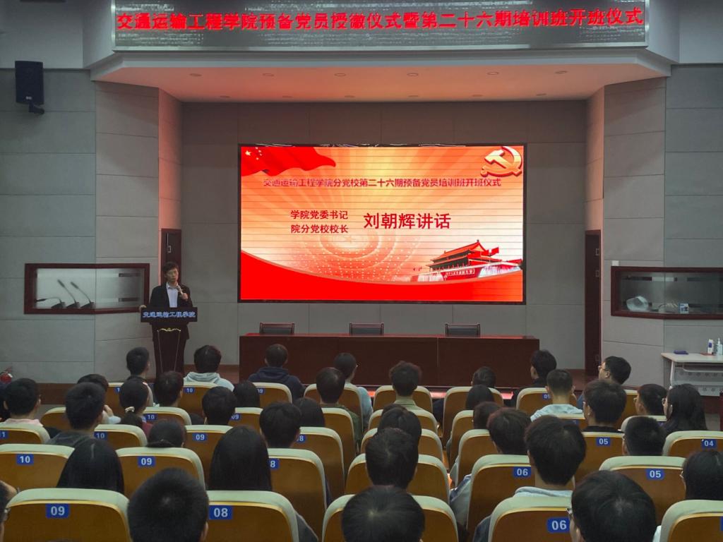 10月27日晚,交通学院分党校第26期预备党员授徽仪式暨培训班开班仪式在工二交通科技报告厅举行。交通学院党委书记、分党校校长刘朝辉,党委副书记、分党校副校长涂道勇,分党校秘书肖敏强以及第26期预备党员培训班全体学员参加。