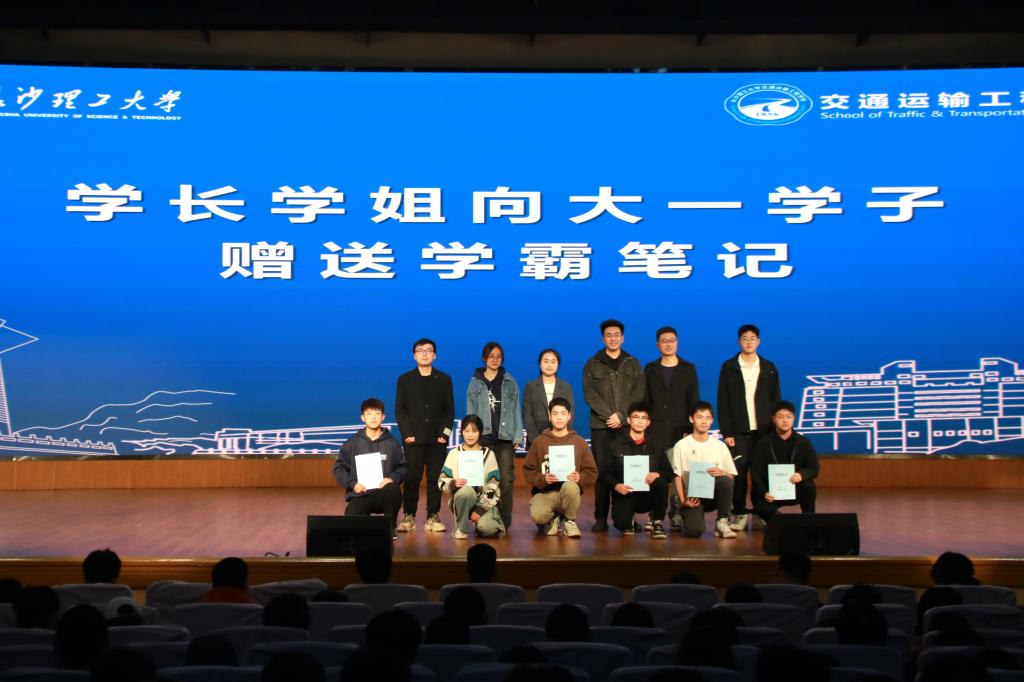 会议第三个环节,2023级辅导员彭笠宣读了《交通运输工程学院2023级本科生攀峰计划活动方案》,道桥2306孙展义同学和23级研究生代表蒋一帆同学分别从参与者和组织者的角度表达了一同执行好攀峰计划的信心。随后,23级学生代表上台,领取学长学姐赠送的学霸笔记。