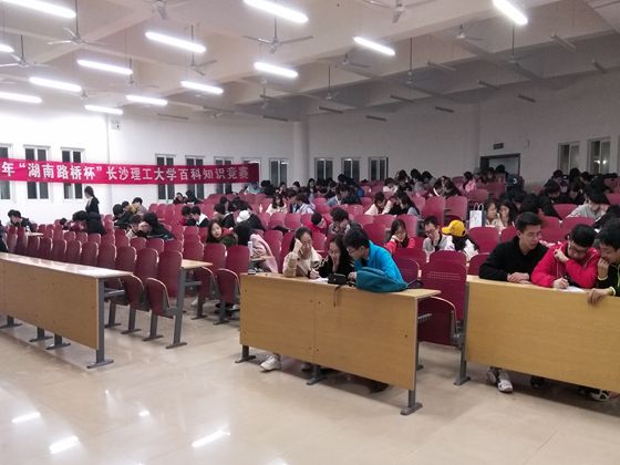 本次“湖南路桥杯”百科知识竞赛初赛有60支优秀的队伍脱颖而出,成功进入复赛。此次竞赛在使同学们深入了解百科知识的同时,也为同学们提供了一个拓展百科知识、学习专业知识、沟通交流的平台。