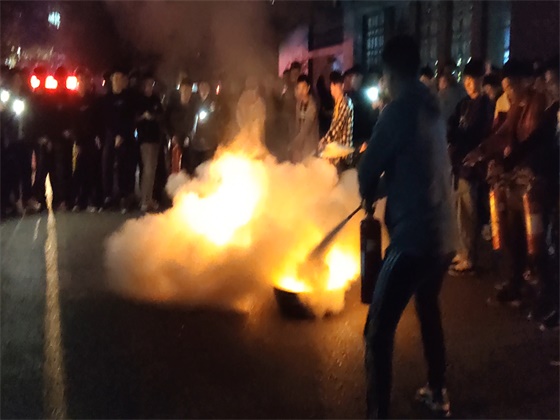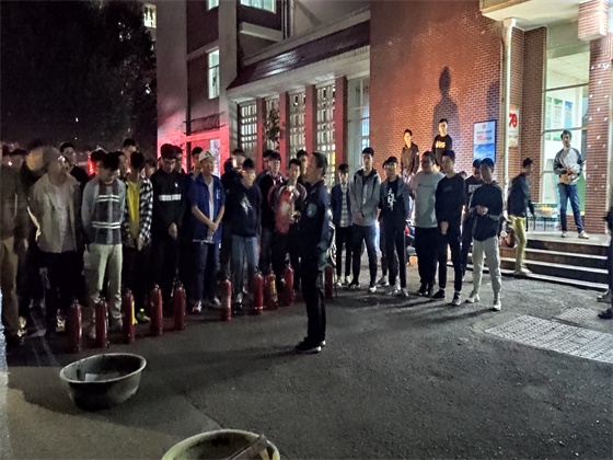 在工作人员的正确引导和同学们的积极配合下,消防演习活动于行健轩三号楼顺利有序开展。18点40分警报声响起,同学们迅速进入紧急疏散状态,全体学生用湿毛巾、衣服等捂住口鼻按照预先的消防演习方案有序撤出宿舍,快速到达安全区域。随后,保卫处易老师给全体学生详细讲解了灭火器的使用方法,并现场进行演示,并邀请部分学生体验使用灭火器的过程。