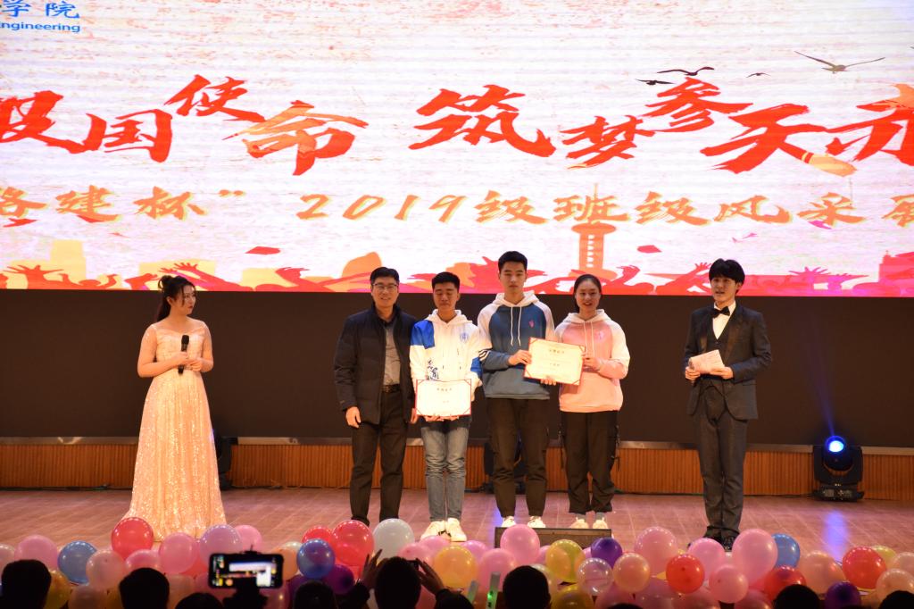本次班级风采展在文工团的乐器演奏和舞蹈串烧中火爆开场。节目分为播种、萌芽、成长和参天四个部分,其中,“班服设计走秀”与“班级才艺表演”相穿插。各班代表身穿本班自主设计的班服进行T台走秀,他们以优雅、热情的步伐散发青春活力,展示班服独特设计的同时,展现本班的良好风貌及同学之间团结友爱的情谊。互动环节中有趣的问题和精美绝伦的奖品充分调动了现场观众们的积极性。各个班级的表演内容丰富、形式多样,有舞台剧、影子舞、小品、歌唱朗诵等形式。无论是形式新颖的影子舞、精彩纷呈的舞台剧还是欢笑连连的小品表演,2019级新生都用他们自己独特的方式展现班级风采,赢得在场师生的赞誉。最后,一首《交通宏图 复兴伟业》的诗朗诵,再次将交通青年的热情点燃。本次班级风采展以大合唱《倔强》结束,“我和我最后的倔强握紧双手绝对不放……”每一句歌词无不体现着交通青年不惧困难,勇往直前的信念。经过激烈的角逐,道卓1901班、工管1901班获得一等奖,道桥1905班、工管1902班、道桥1904班获得二等奖,测绘1902班、道桥1903班、道桥1906班、道桥1901班、道桥1902班获得三等奖。