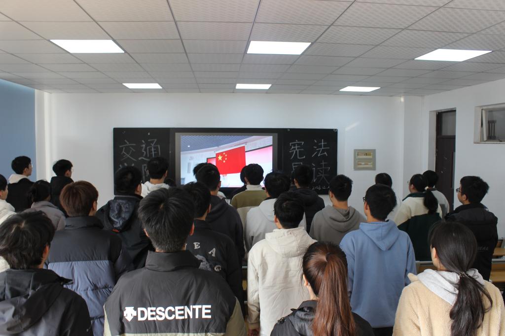 为深入贯彻宪法精神,增强学生法治观念,12月4日上午,第十个国家宪法日到来之际,交通学院于云塘校区工二B606组织学生集中观看“宪法晨读”直播活动,院属各班级自行开展线下集中观看