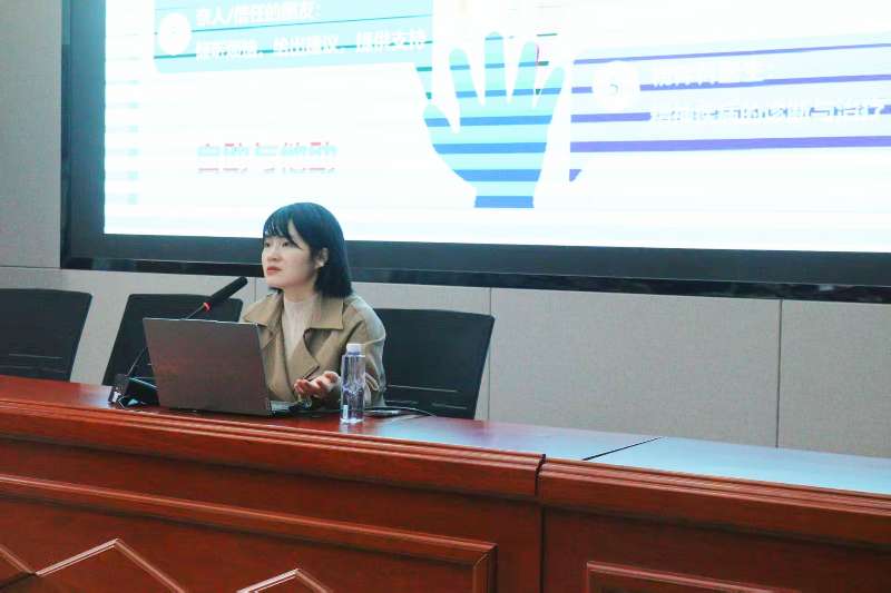 汪招霞围绕研究生心理健康现状、在读期间可能面临的心理压力与危机,以及如何培养积极阳光的心态等方面展开讲解。她重点介绍了心理压力的调适策略,并详细说明了学校和学院两级心理支持渠道,鼓励同学们在遇到心理困扰时主动寻求帮助,积极应对挑战。