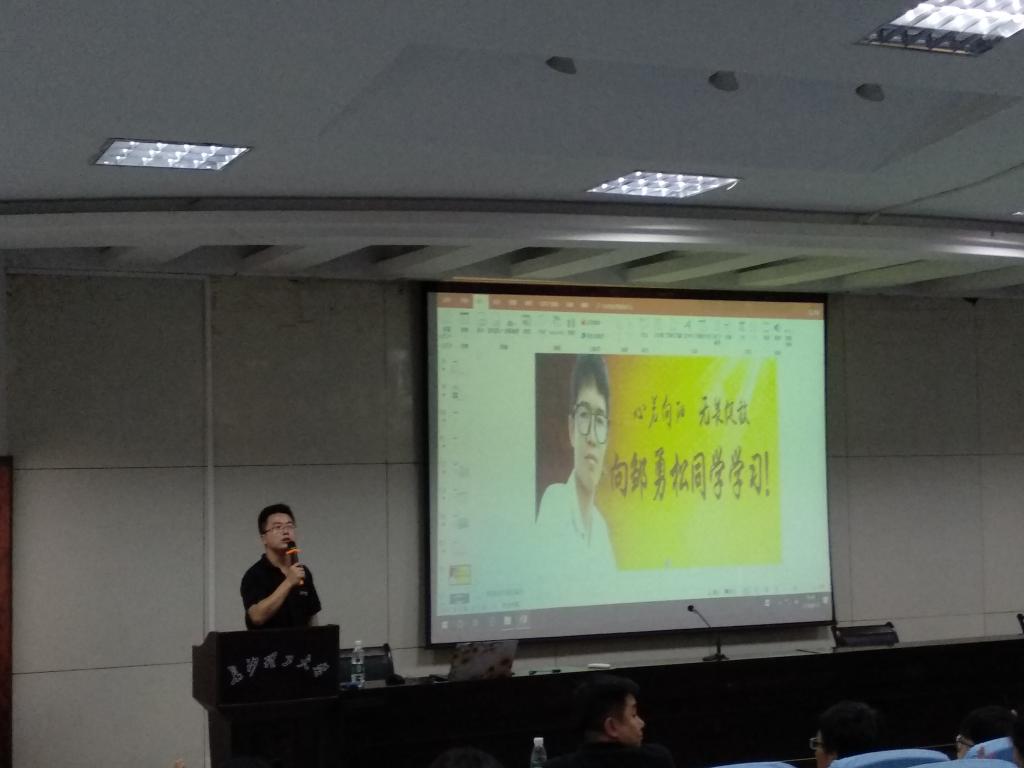 成功的花儿,人们只惊艳它现时的明艳,然而当初它的芽儿,浸透了奋斗的泪泉,洒遍了牺牲的血雨,而他便是绝崖之上的雪莲花,在绝境中求生,让梦想开花。曾凯说:“大家即将走出校园,走入社会,走上工作岗位,可能会遇到前所未有的困难,希望大家以邹勇松同学为榜样,永远内心坚定,初心不忘,继续前行”。